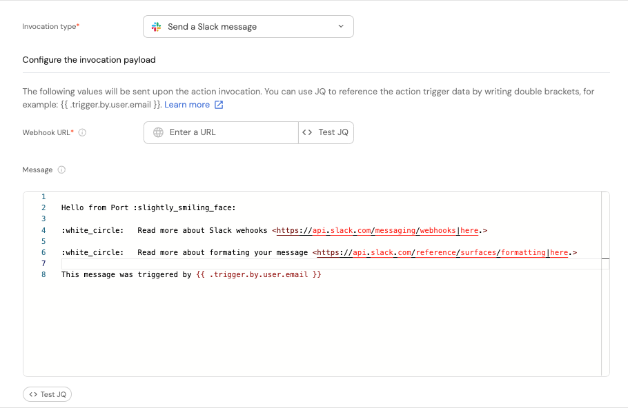 backend type allows you to send a message to a Slack channel, using a webhook URL.
