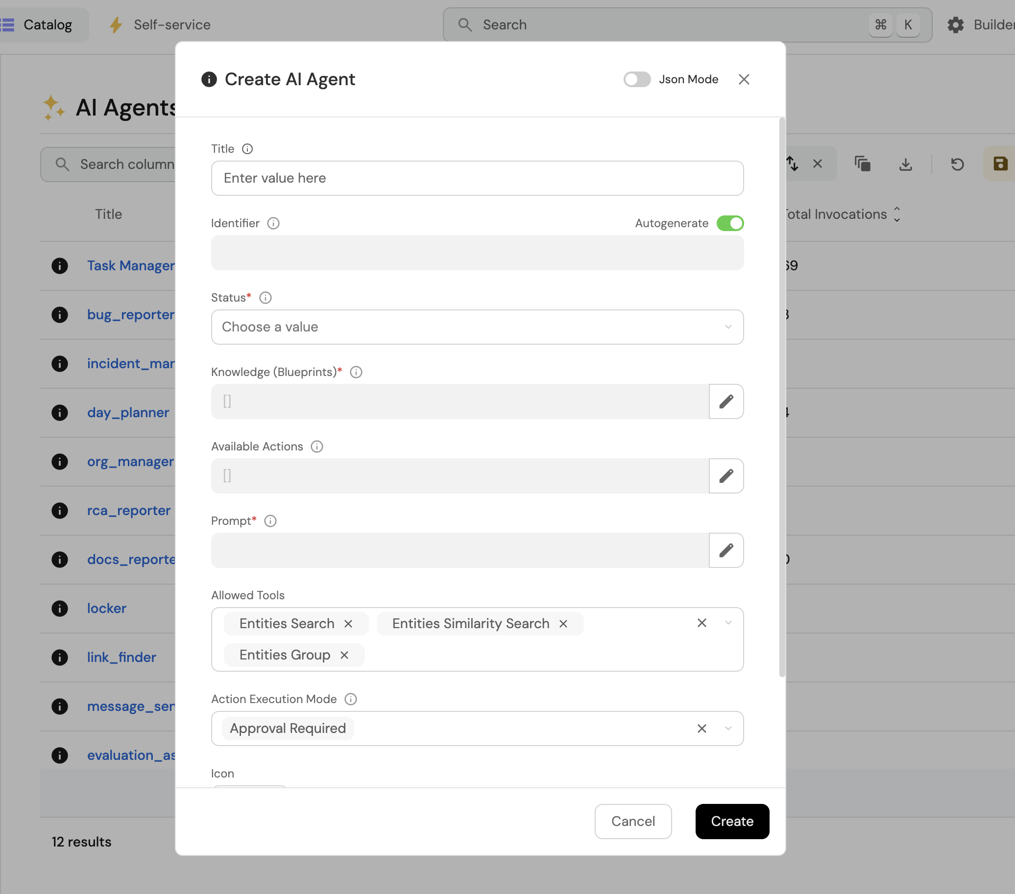 To create a new agent, head to the AI Agents catalog page (this page will be created for you when you activate the feature).