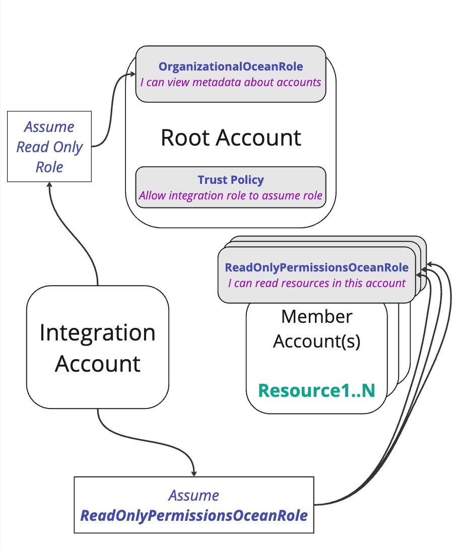 Then, In order for the integration's role to get accounts metadata, We'll need to give our integration role, ReadOnlyPermissionsOceanRole