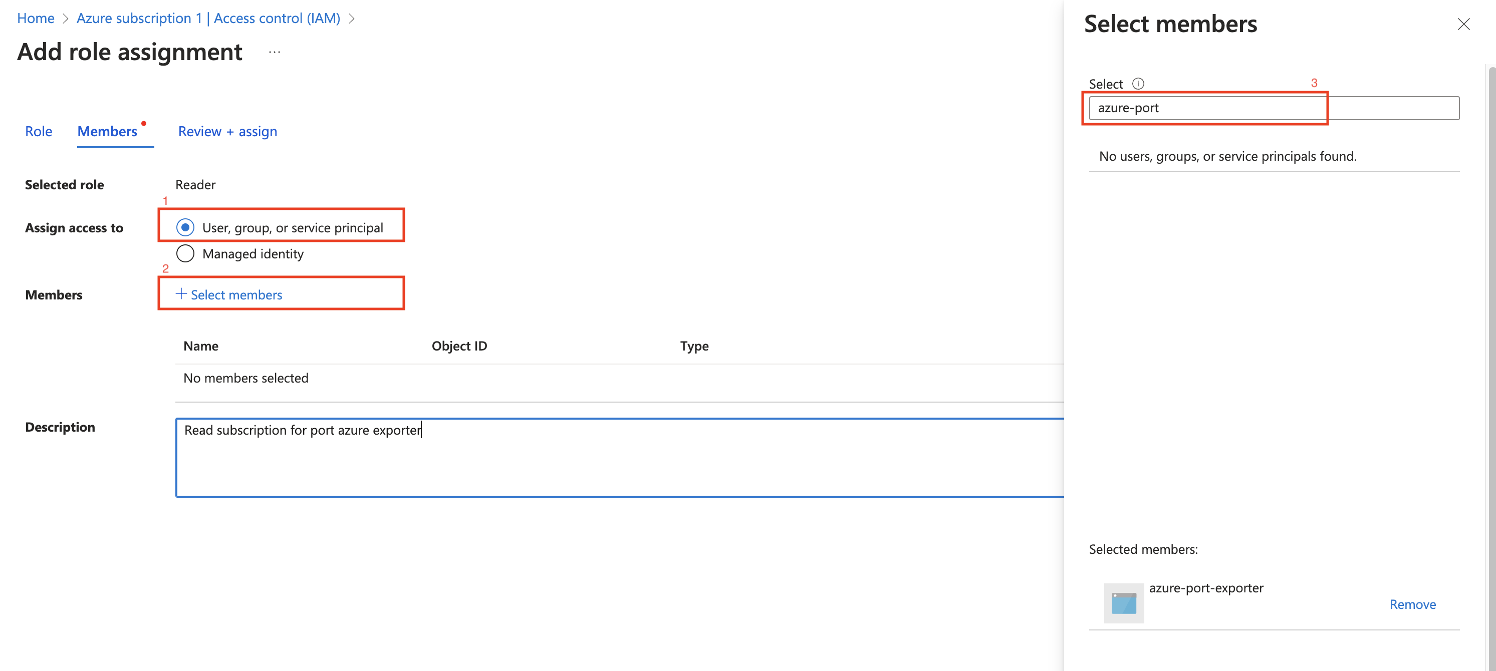 - Create a new role assignment for the App Registration. Go to the