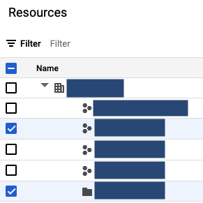 - Pick your desired scope (organization/folders/projects), using the left checkboxes.