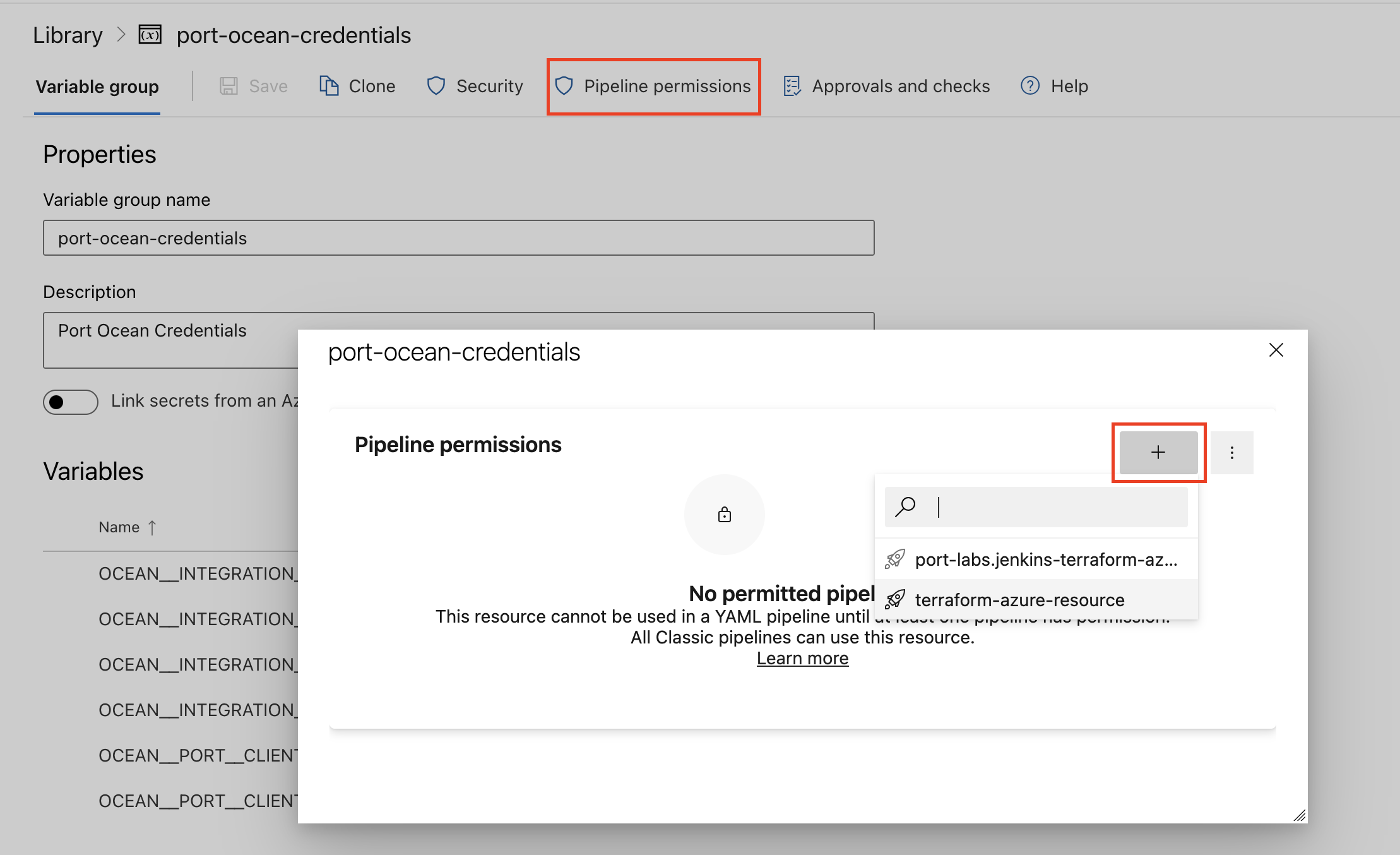 command will be displayed, with default values already filled out (e.g. your Port client ID, client secret, etc).