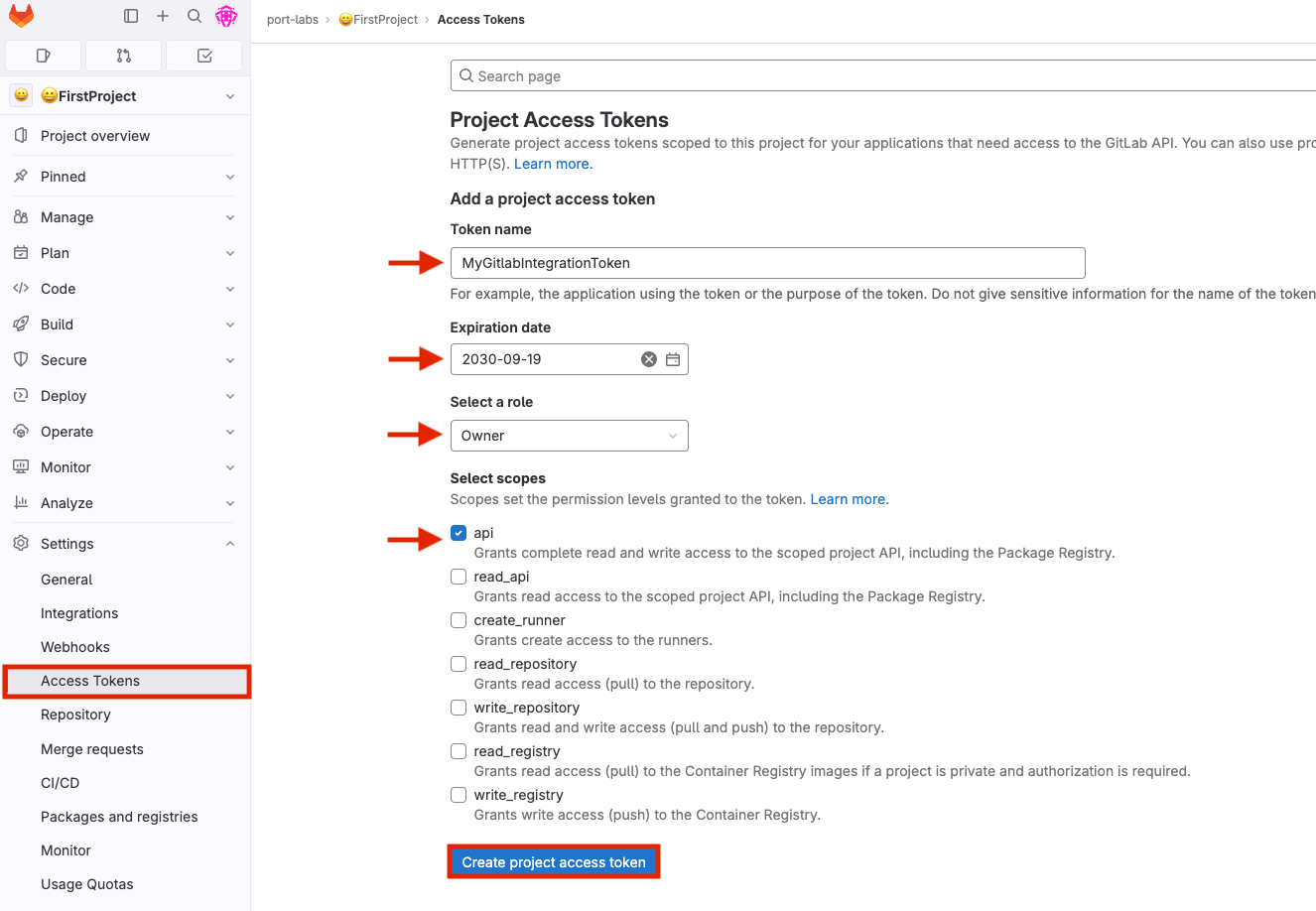 Port's GitLab integration supports OAuth2 for quick installation, see OAuth2 installation for more information.