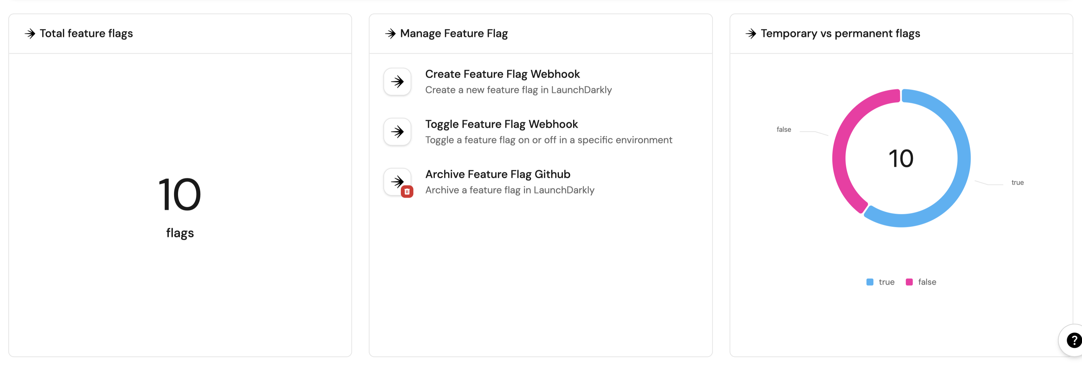 - Build dashboards in Port to monitor and take action on your feature flag resources.