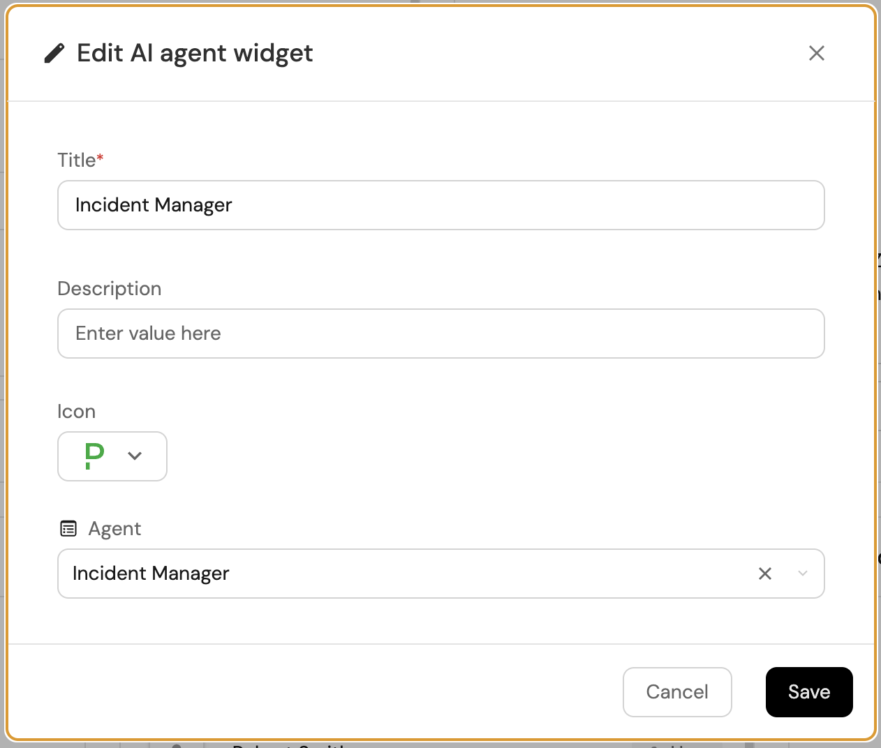 The Incident Manager AI agent can be accessed through an AI Agent widget in your Port dashboard.