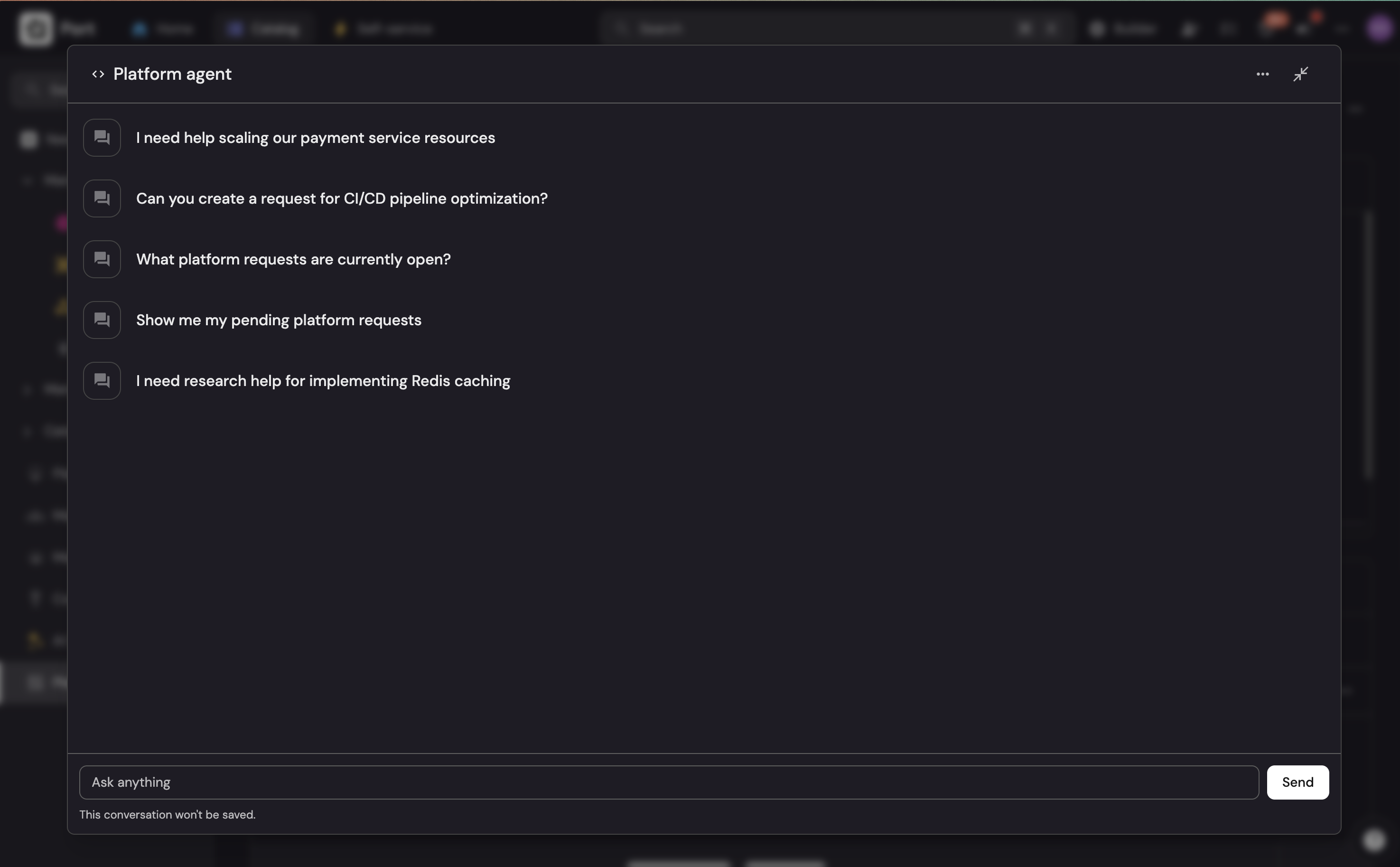 You can interact with the Platform Bot AI agent in two main ways: through the Port UI or via Slack.