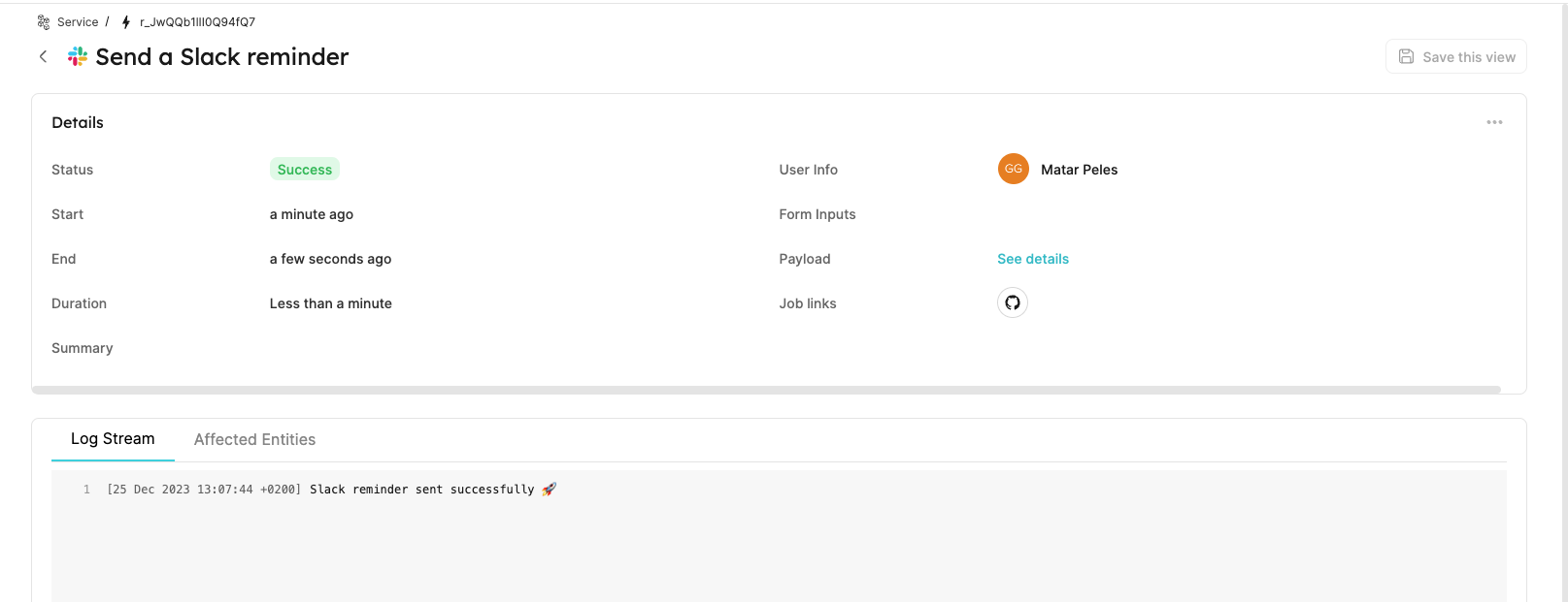 -d '{"message": "Slack reminder sent successfully ๐"}' \