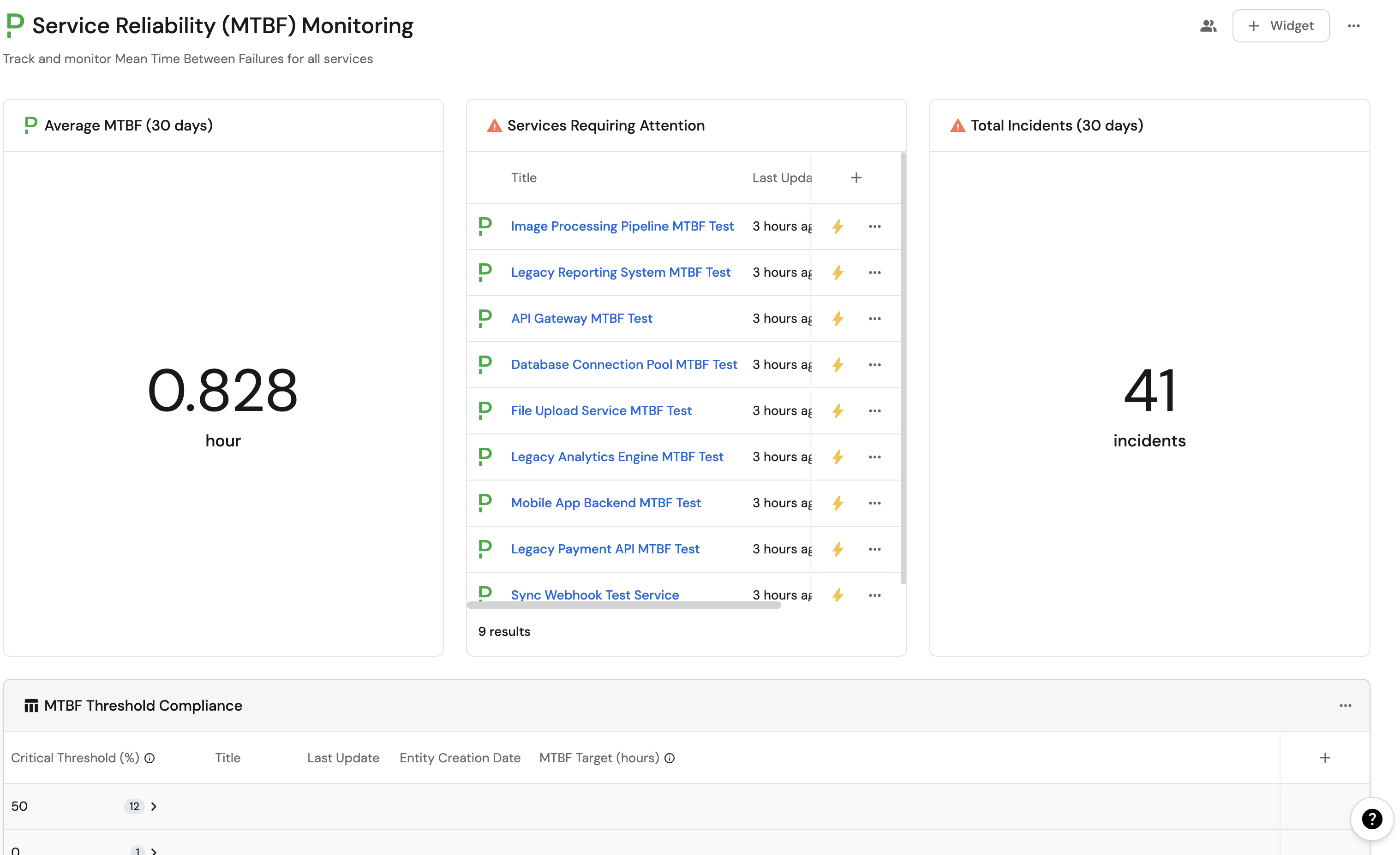 MTBF overview widget (click to expand)