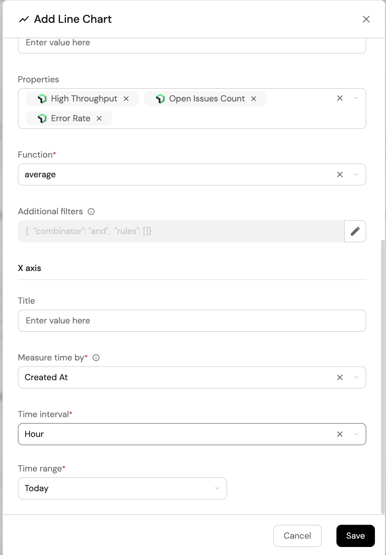 7. Choose createdAt as the X axis Property.